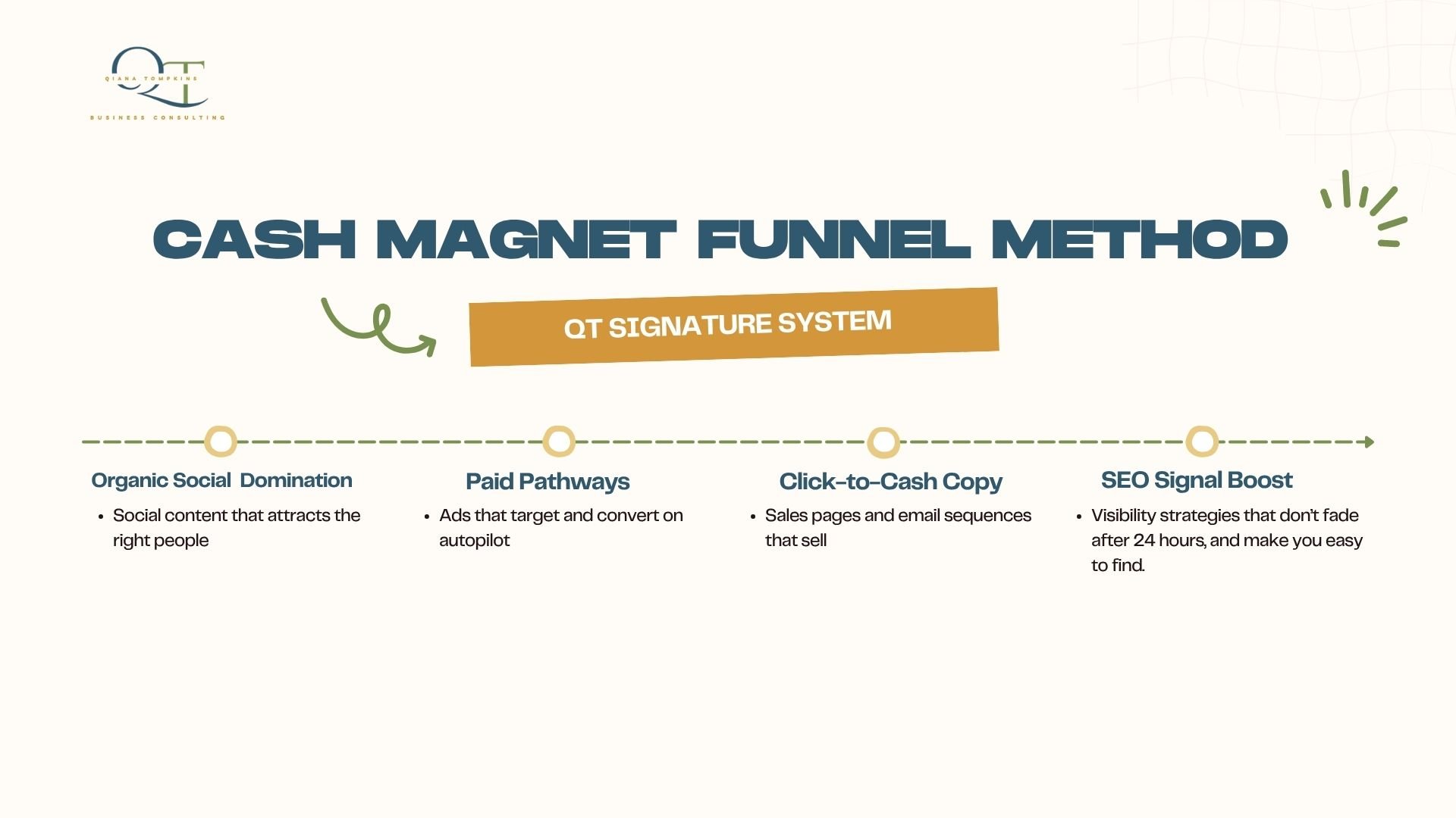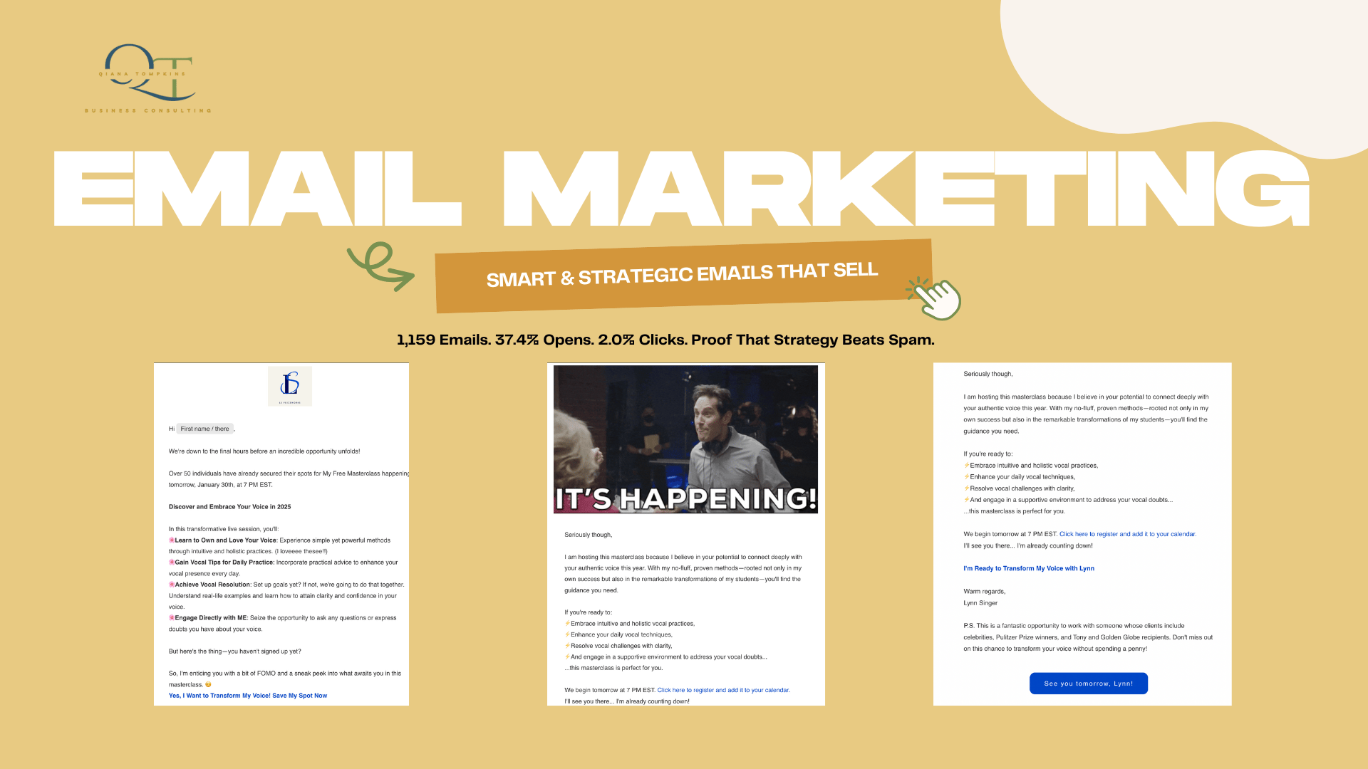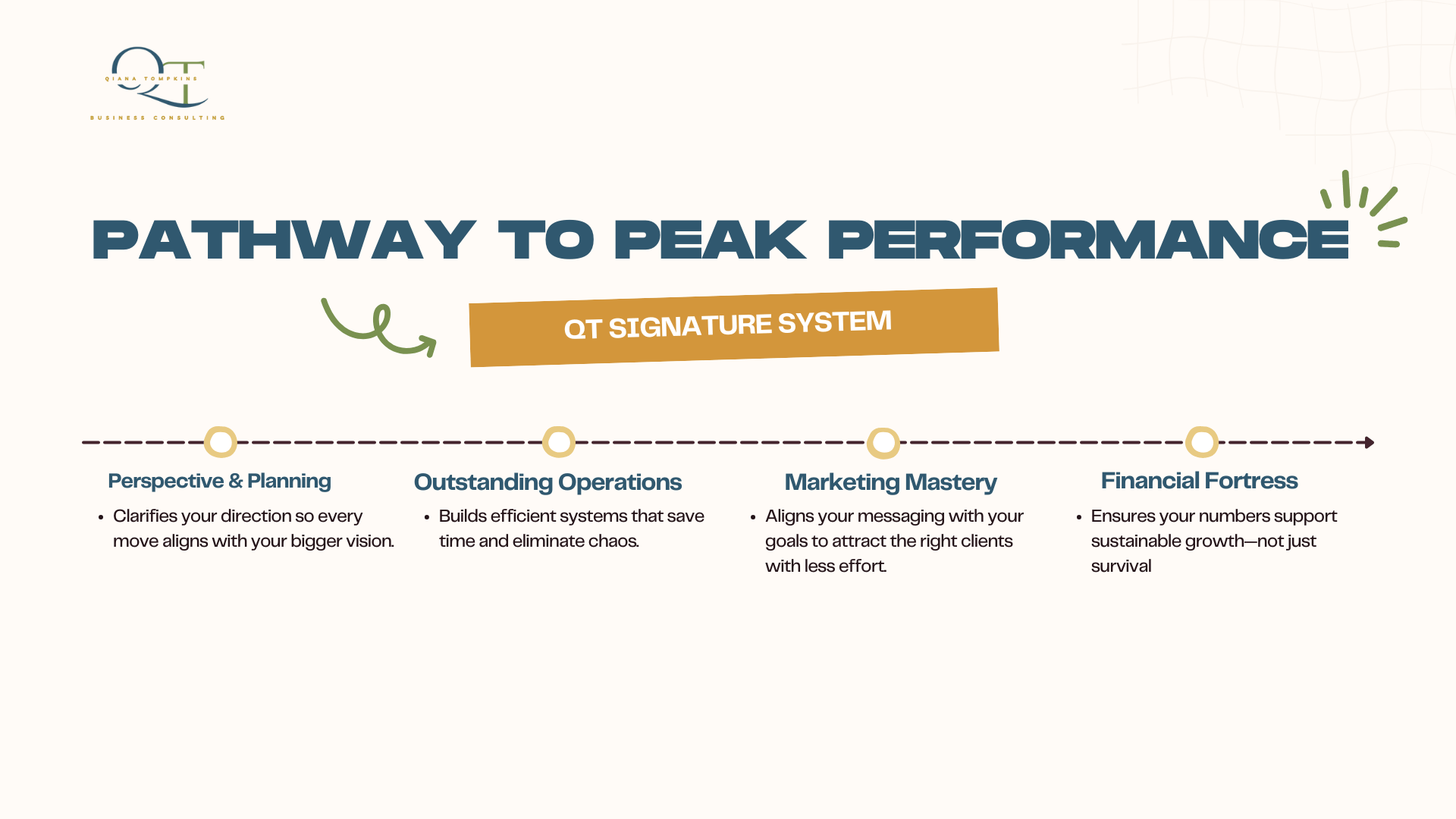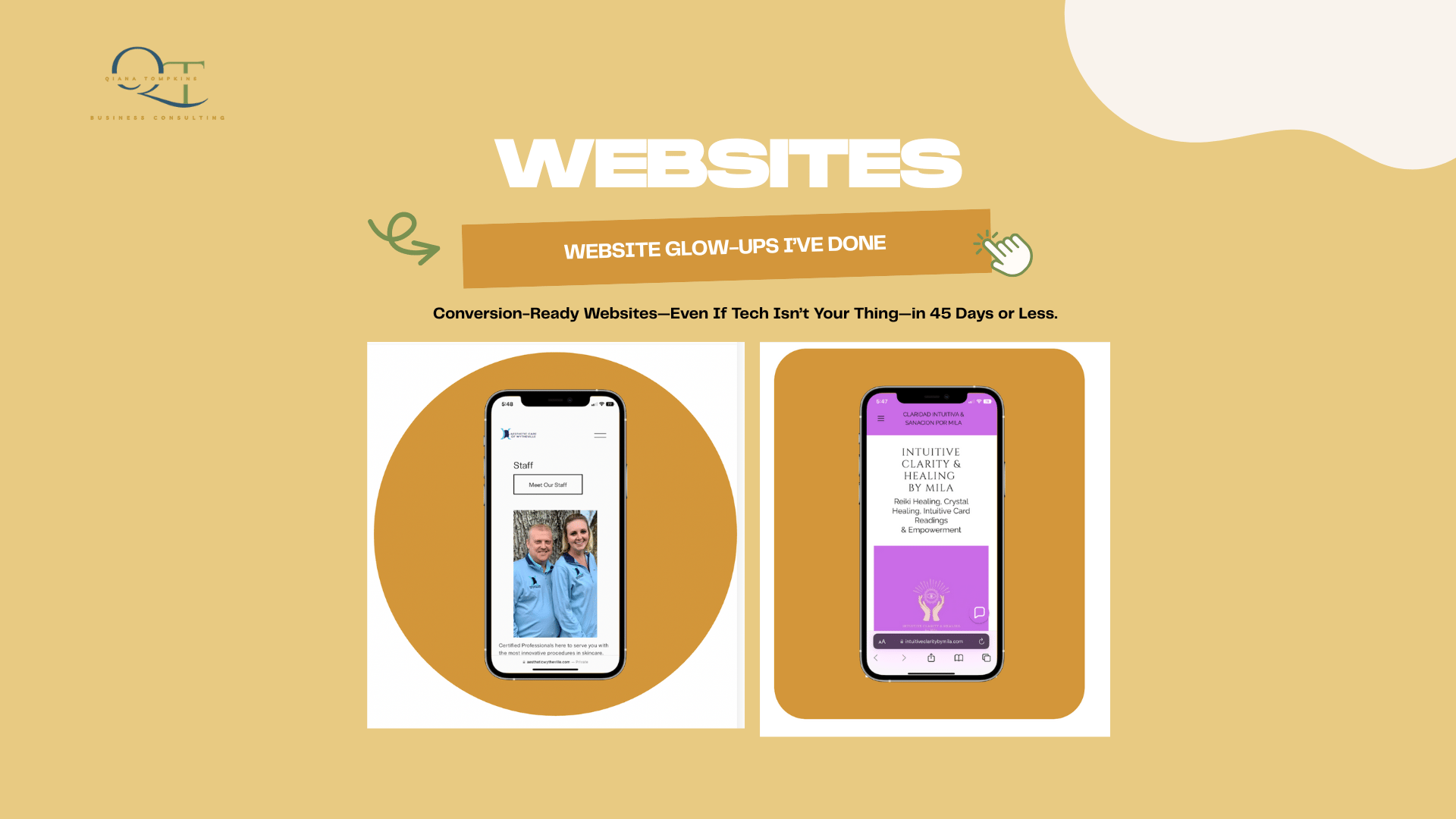 Everything I do is custom. Your business isn’t a template—and neither are my strategies. I use my signature frameworks as a foundation, but every plan is tailored to your vision, challenges, and goals. Period.